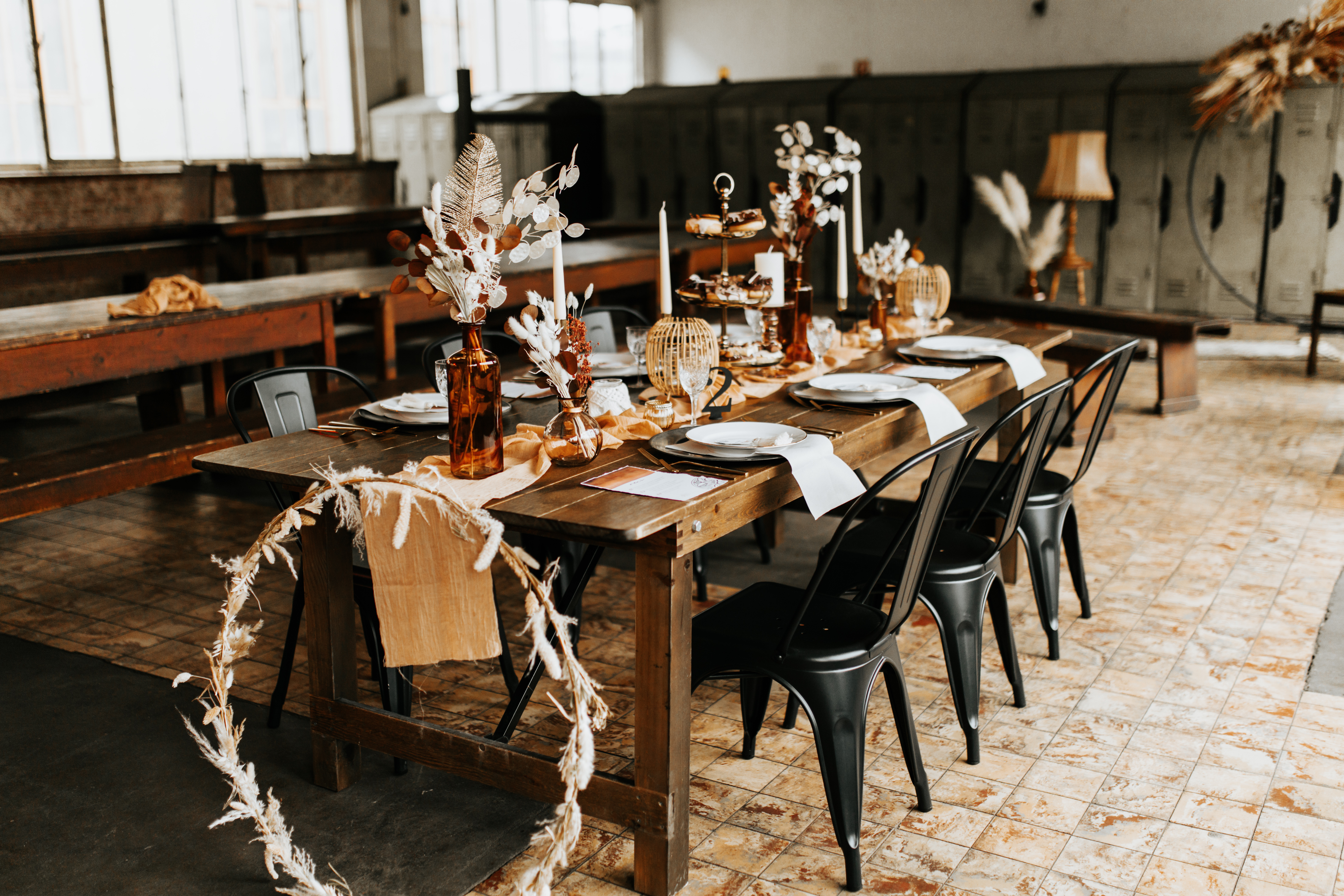 Wenn ihr diese schwarzen Metallstühle für eure Hochzeit mietet, könnt ihr ein harmonisches Gesamtbild schaffen, in dem ihr mit weiteren schwarzen Details arbeitet. Schwarz gerahmte Laternen, schwarze Kerzenleuchter, ein schwarzer Traubogen. Vielleicht möchtet ihr insgesamt eine rockige, industrielle Richtung einschlagen.